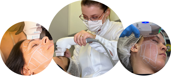 Tratamento completo que abrange todo o rosto: testa, região dos olhos, bochechas e bigode chinês. Ideal para melhorar a firmeza geral da pele, redefinir o contorno facial e proporcionar um efeito lifting natural.